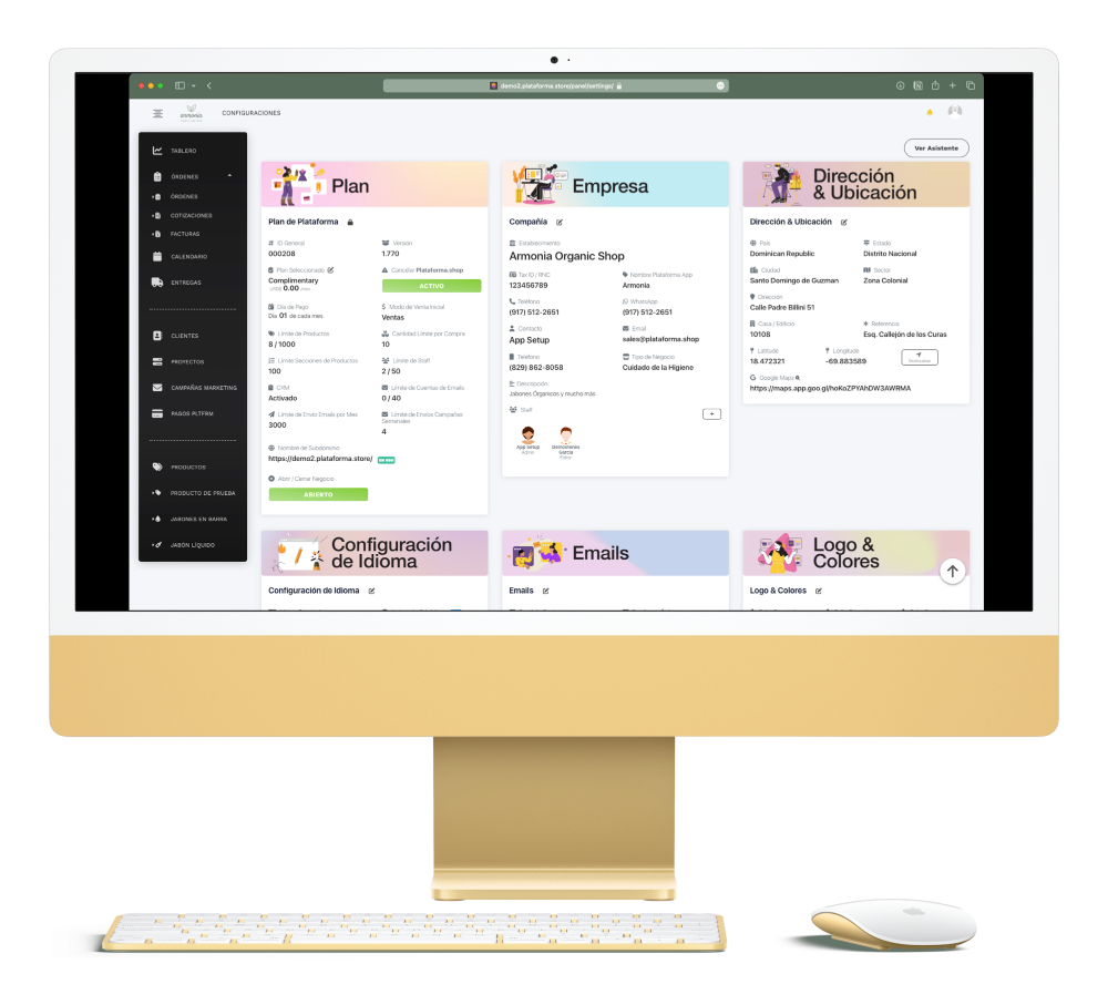 Procedemos a asistirte paso a paso con la configuración de tu tienda online, cargamos tu logo, creamos la paleta de colores, creamos los banners de tu página de inicio, alimentamos el inventario de tu tienda y activamos cada elemento necesario para que inicies tu tienda en un 2x3.En caso de ser necesario, nos encargamos del diseño gráfico de tu tienda.